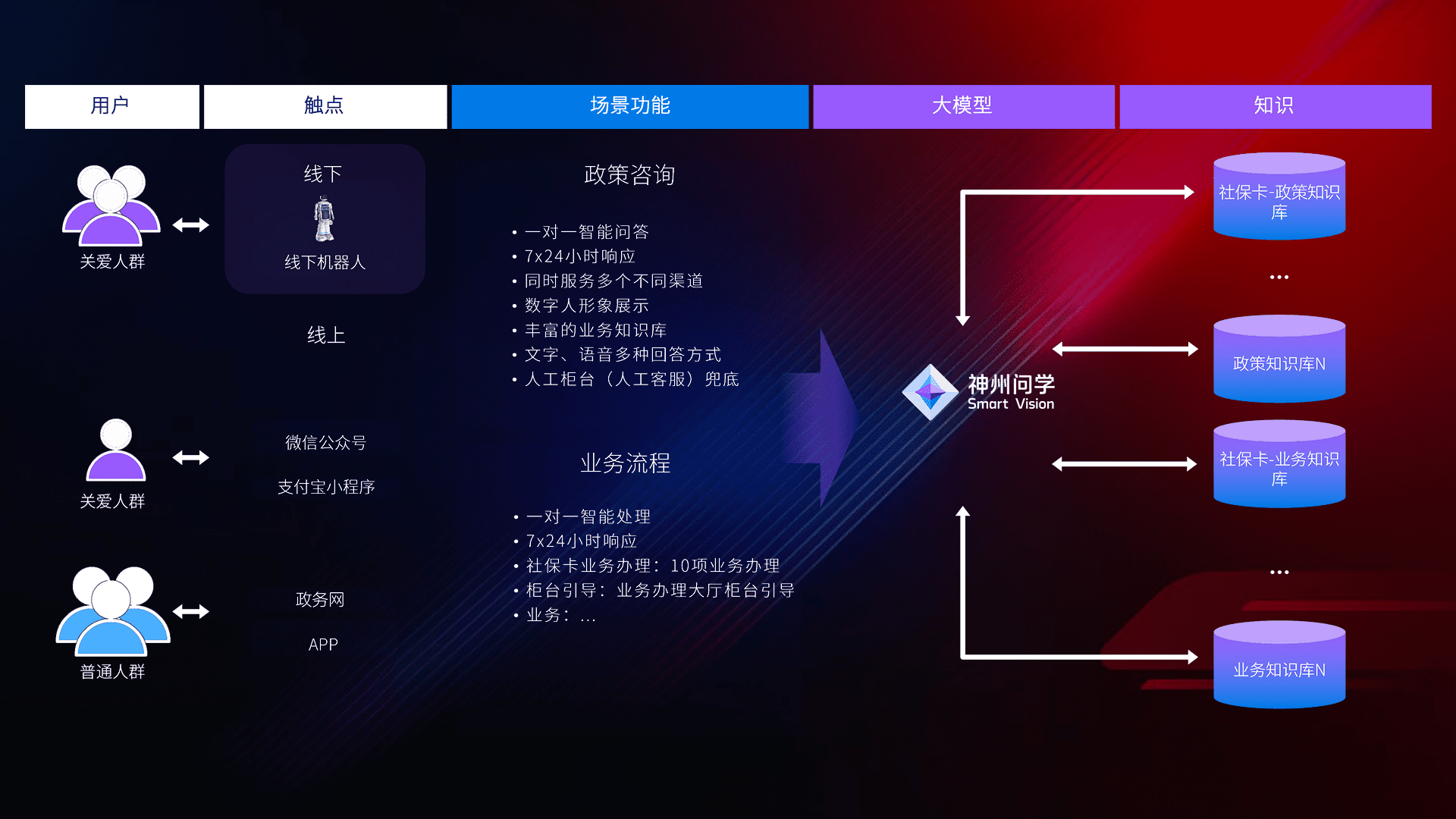 • 线上线下全覆盖:线上提供微信公众号、、支付宝小程序、、政务网、、app多种渠道,,与线下机器人形成完整服务体系。。。