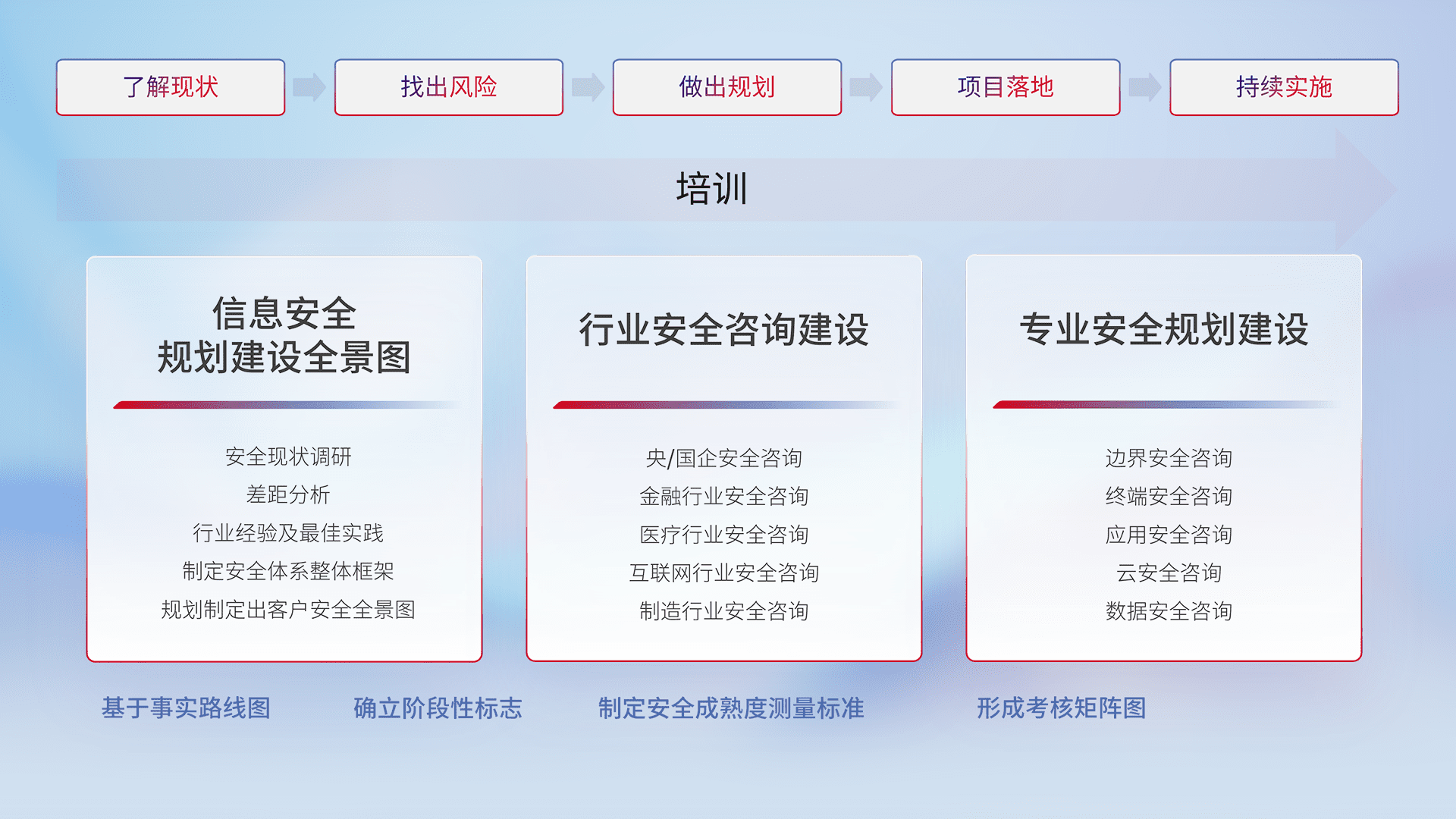 梳理客户信息安全现状调研、、、差距分析结果,,,结合行业先进经验及最佳实践,,,制订客户的信息安全管控体系总结架构,,最终形成一个完整的客户信息安全规划与建设的全景图。。。