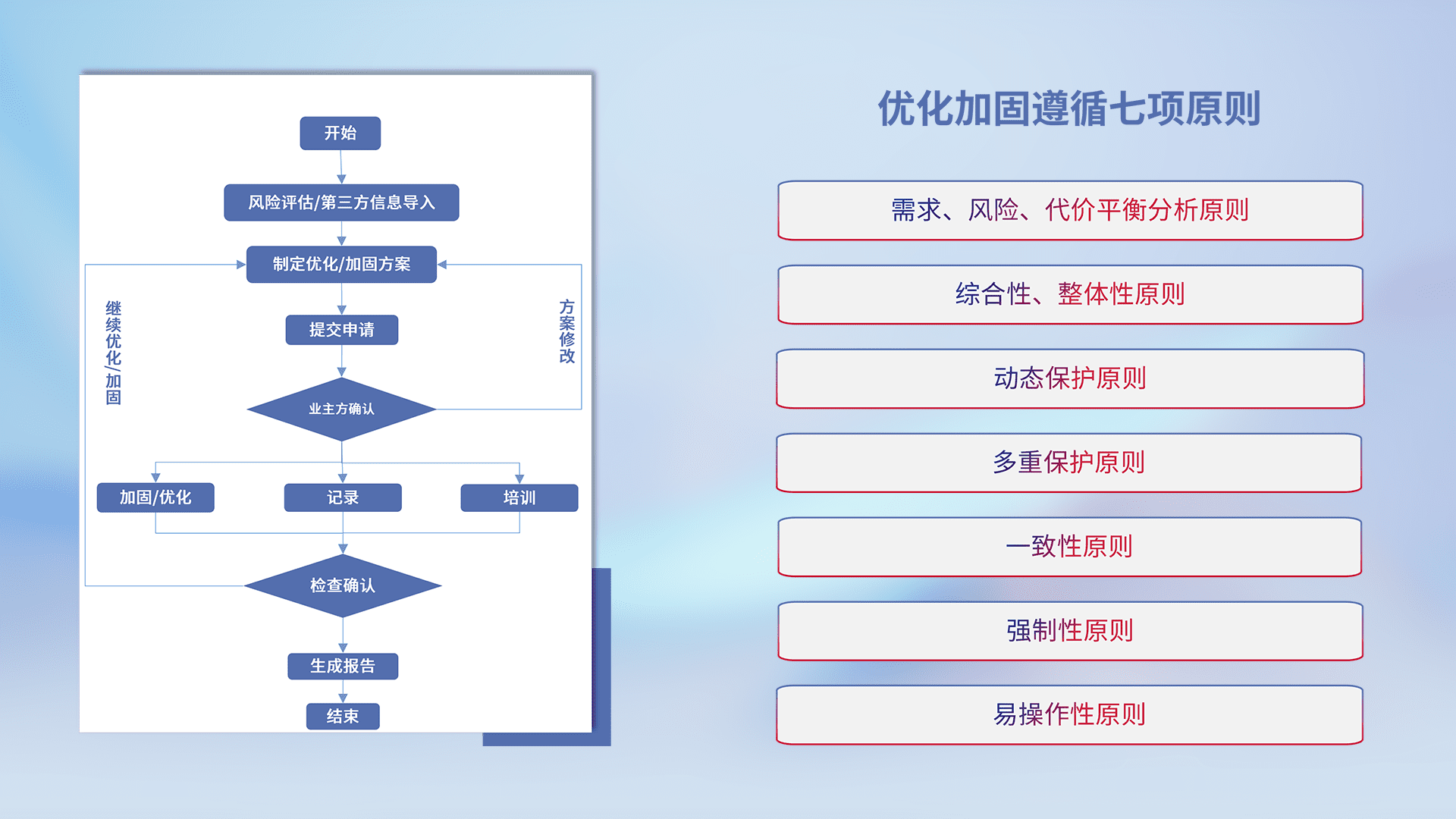 最大程度利用现有资产,,,,对评估发现的问题进行封堵与整改,,,防止漏洞被利用,,提升整体网络安全性,,,为客户带来高标准的优化加固服务。。。